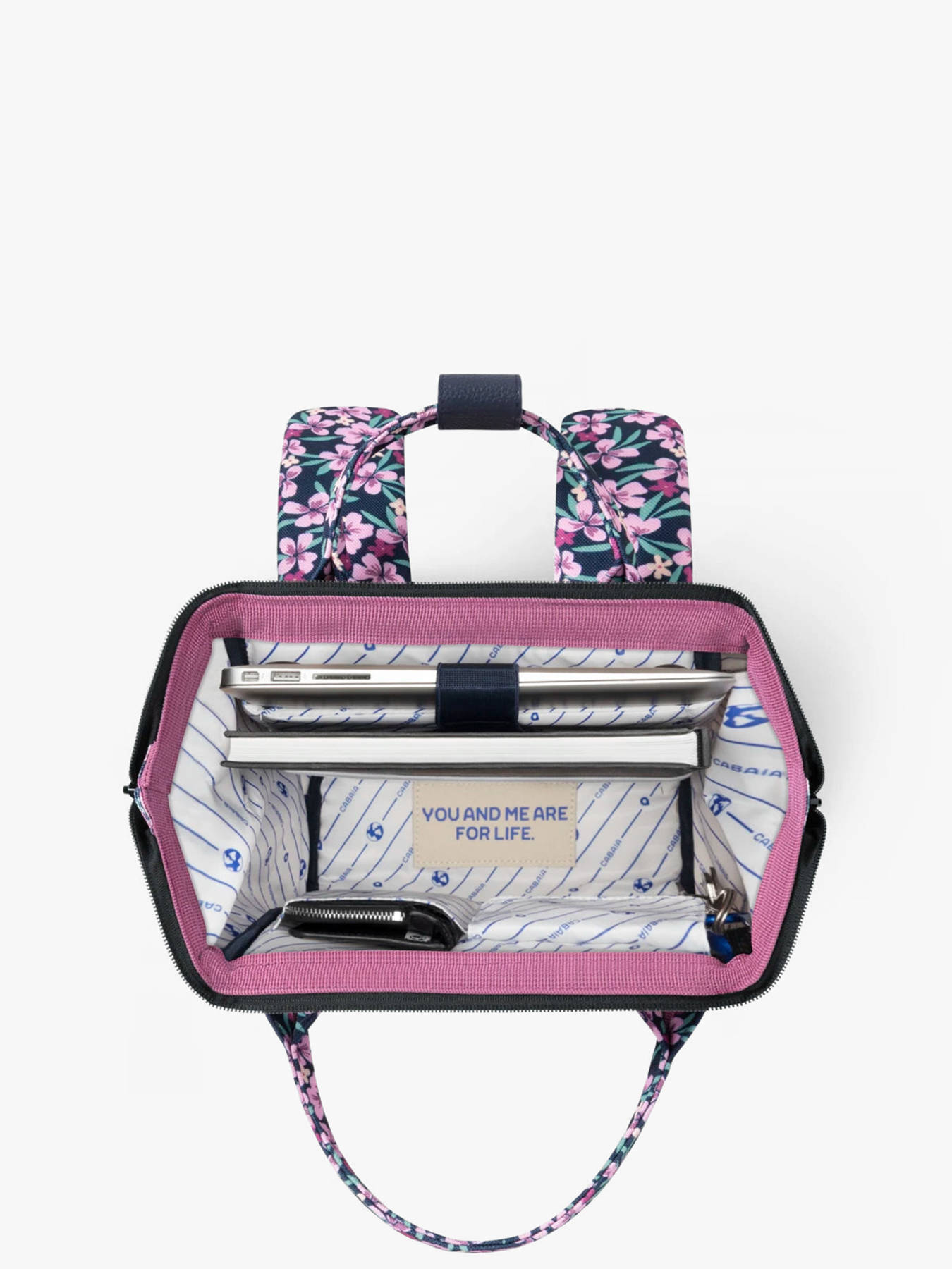 Adoptez le sac à dos vegan signé Cabaia ! Ce sac à dos Mini sera votre compagnon idéal, aussi bien pour les cours que pour voyager. On craque pour sa poche frontale amovible et interchangeable. Réalisé à partir de Nylon 900D la toile est très résistante. Ce sac à dos ados dispose d'une ouverture ""cabas"" grand angle donnant accès à un grand compartiment principal pouvant contenir un Ipad (hauteur 28 cm x largeur 21 cm x épaisseur 2 cm) à ranger dans la poche renforcée et du format cahiers A4. Très pratique, ce sac à dos sera également parfait pour transporter vos affaires lors d'un weekend, comme 1 jeans, 2 tee shirt, des sous-vêtements, une trousse de toilette et une tablette. Pour plus de confort et résistance, le fond est renforcé, le dos est rembourré et les bretelles sont molletonnées et anti-transpirantes. Au dos du sac, une poche zippée a été prévue pour ranger les petits effets personnels. Il y a également au dos une poche zippée spéciale pour glisser son téléphone portable ! On retrouve, sur le devant du sac à dos jeune un système de poche inviolable et breveté (système MOLLE) qui vous permet de personnaliser votre sac selon vos goûts. Deux poches zippées interchangeables sont fournies avec le sac à dos. Vous pouvez également ajouter des petites pochettes amovibles sur les côtés pour le personnaliser !