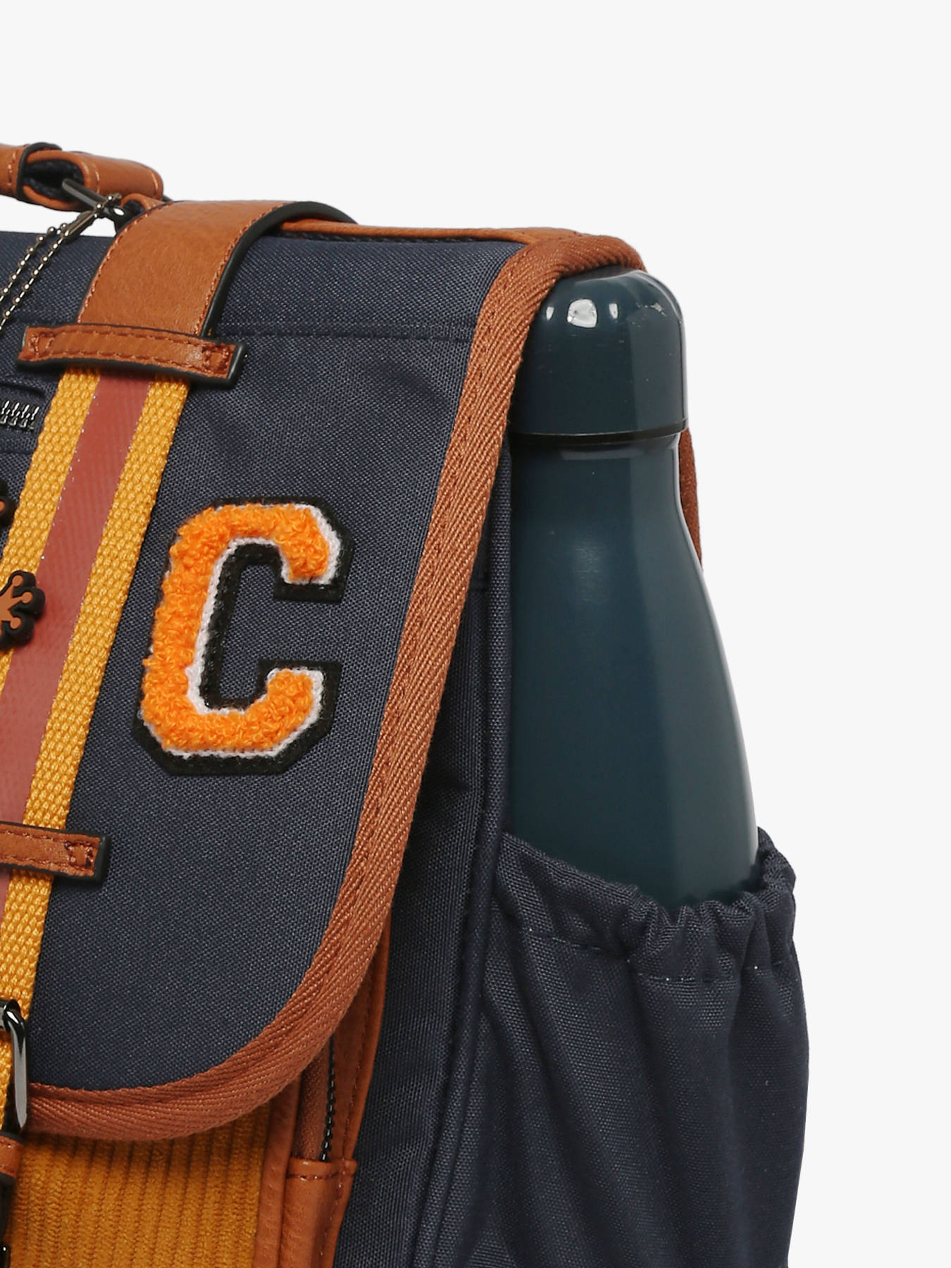 41 cm - 24 liter - 1.33 kg ~ Deze schooltas uit de Vintage collectie van het merk Caméléon heeft een breedte van 41 cm. Ideaal voor vanaf het 4de leerjaar! Dit model heeft een duidelijke vintage look, dankzij twee voorvakjes en de riempjes met gespen. De schooltas beschikt over drie ruime compartimenten, die schriften (24x32 cm), mappen en schoolboeken van A4 formaat kunnen bevatten. Onder de overslagflap bevindt zich ook een uniek opbergvakje, voorzien van een gratis liniaal. De twee kleine ritsvakjes vooraan zijn perfect om een snack of andere kleine spulletjes in te stoppen. Dit model beschikt ook over een naamlabel aan de achterzijde, en kan makkelijk gesloten worden dankzij een dubbel kliksysteem. Voor optimaal comfort zijn de rugzijde en schouderbanden extra gewatteerd. Dankzij enkele reflectoren kan uw kind zich ook veilig in het verkeer begeven. Vintage op z'n mooist!