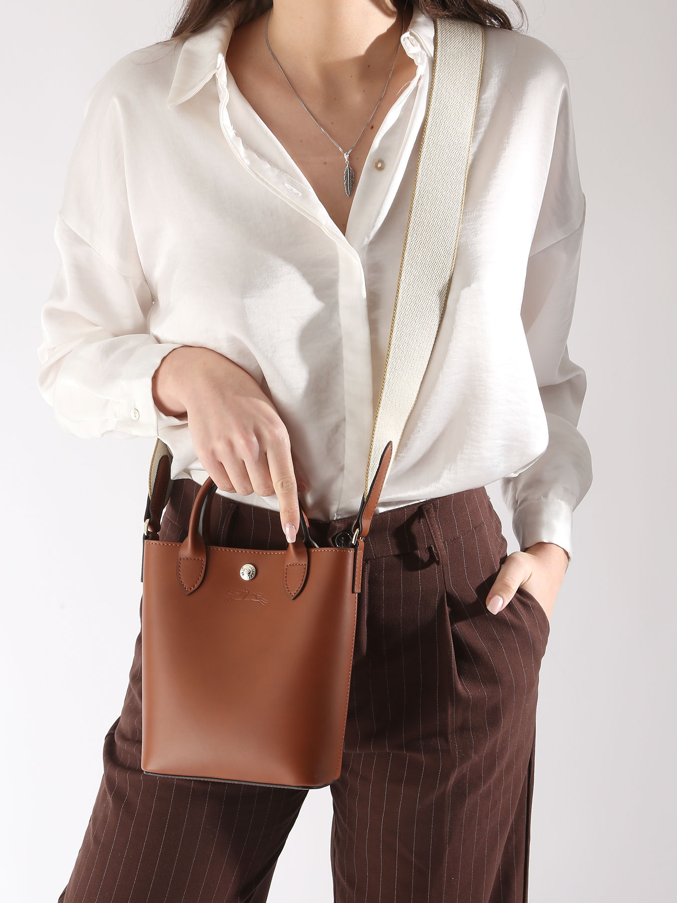 Deze XS Épure cross body tas van glad kalfsleer belichaamt discrete en verfijnde elegantie. Het ultra-minimalistische ontwerp, benadrukt door strakke en licht afgeronde lijnen, legt de nadruk op de kwaliteit van het vakmanschap van het Huis. De drukknoopsluiting en de leren inzetten voegen een vleugje verfijning toe, terwijl de brede leren schouderriem, geïnspireerd op de sportieve chique stijl, een moderne en dynamische dimensie toevoegt. Dit model is ideaal voor dagelijks gebruik, met zowel praktische als esthetische voordelen. Het kan in de hand of crossbody gedragen worden dankzij de verstelbare riem, afhankelijk van je voorkeuren en behoeften. De XS Épure tas herinterpreteert klassieke elegantie met een hedendaagse benadering, en voegt een verfijnde vleugje toe aan elke outfit. Het belichaamt de geest van optimisme en elegantie die het Merk definieert, voor een look die zowel ingetogen als chique is.