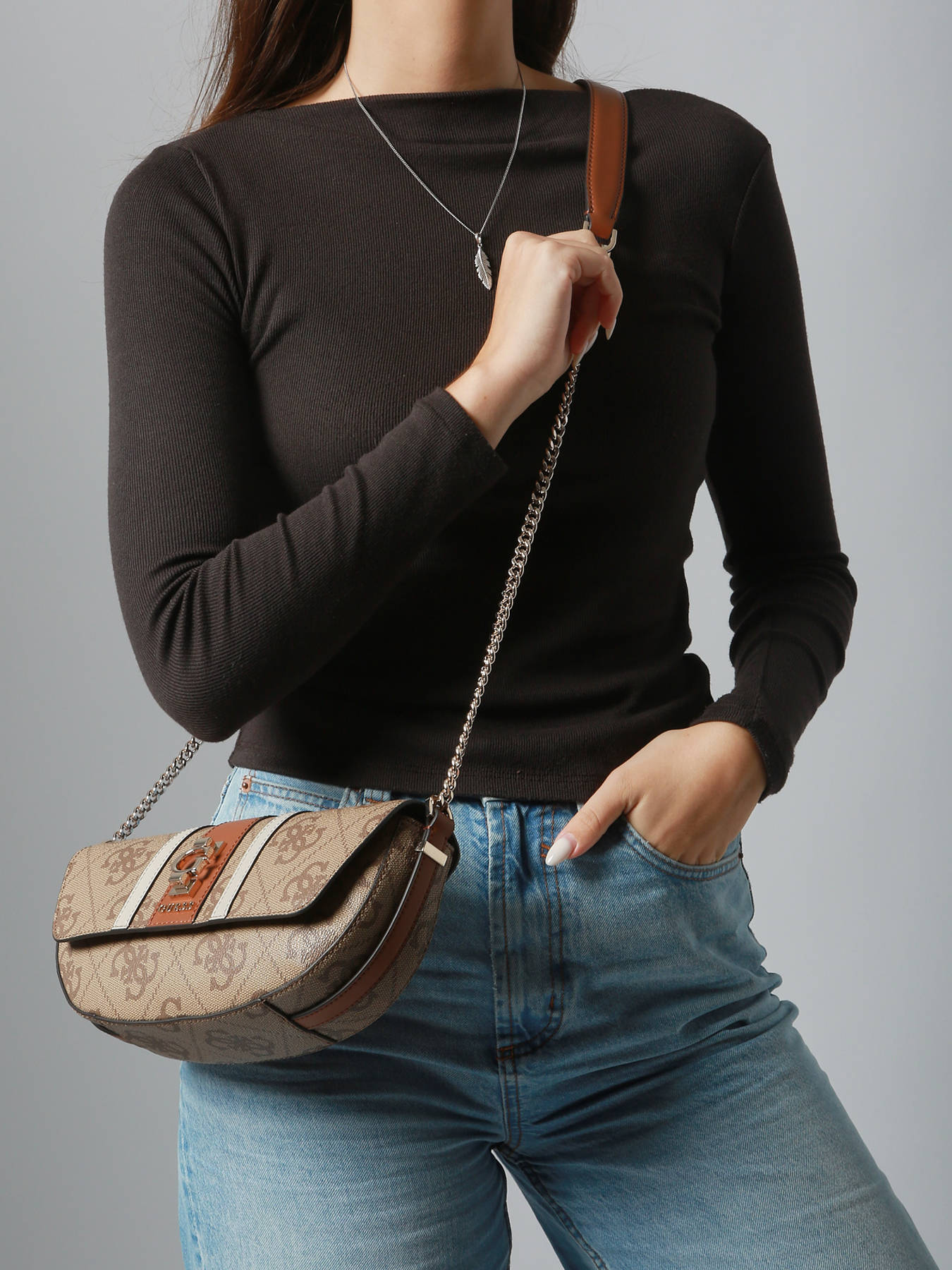 De cross body tas Erenia van Guess, gemaakt van duurzaam gecoat canvas, combineert elegantie en functionaliteit voor een stijlvolle dagelijkse look. De klepsluiting met magneet beveiligt je bezittingen en biedt tegelijkertijd gemakkelijke toegang. Hij kan over de schouder of als cross body tas worden gedragen dankzij de verstelbare schouderband, wat comfort en veelzijdigheid biedt afhankelijk van je behoeften. De buitenkant is voorzien van een praktisch achtervak om je essentials binnen handbereik te houden. Het interieur bestaat uit een hoofdcompartiment, aangevuld met drie eenvoudige vakken, waardoor je je persoonlijke spullen efficiënt kunt organiseren. Compact maar functioneel, overtuigt de Erenia met zijn moderne lijnen, verzorgde afwerking en chique stedelijke uitstraling. Ideaal voor dagen in de stad of casual uitstapjes, wordt dit een onmisbaar accessoire dat stijl en functionaliteit combineert om je outfit elegant te completeren.