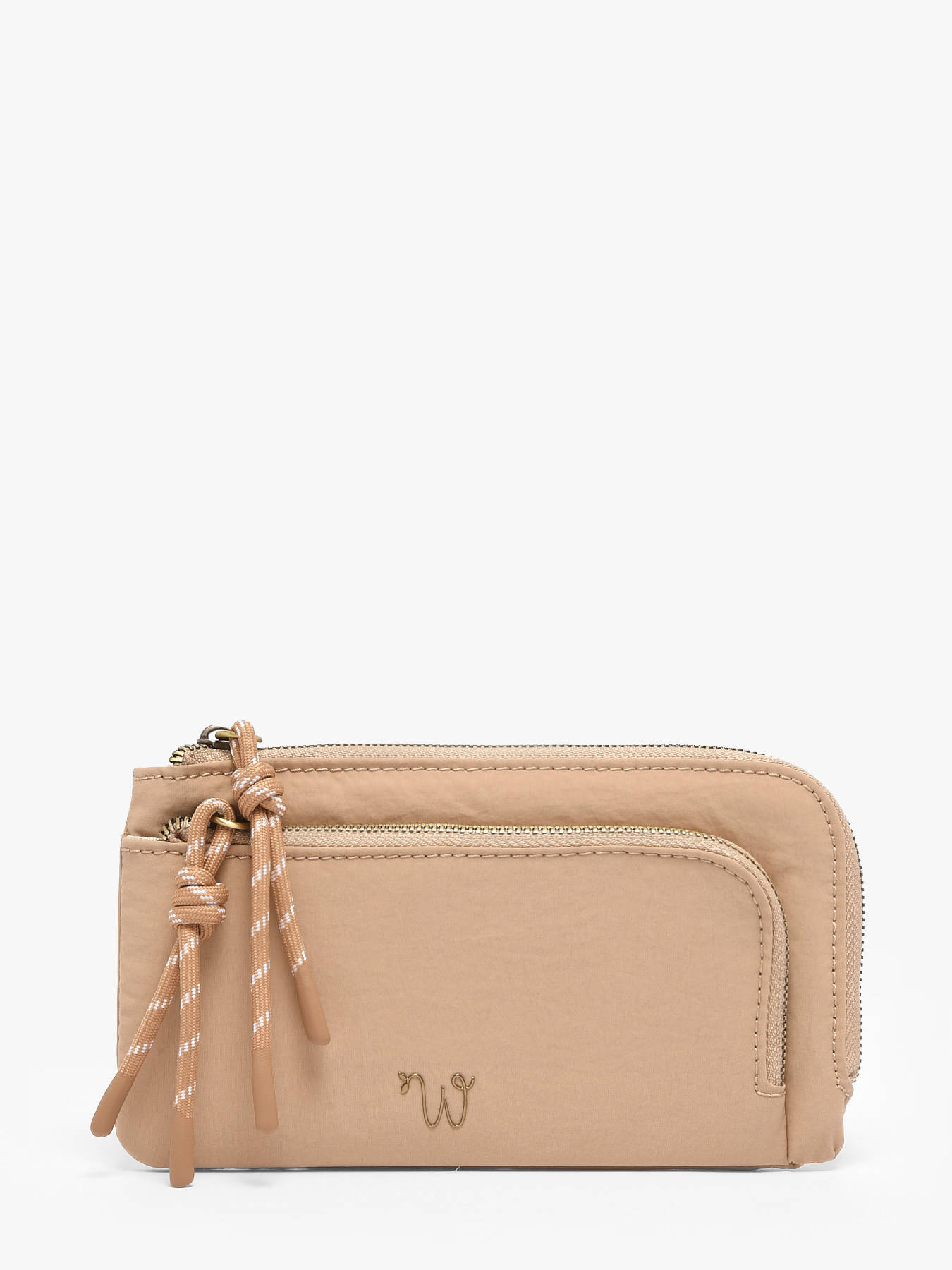 De portemonnee WOOMEN uit de lijn Primevère combineert stijl, praktisch gebruik en duurzame betrokkenheid. Het hoofdmateriaal van gerecycled nylon, gevoerd met katoen en linnen, biedt lichtheid en stevigheid. De decoratieve koorden en het onderscheidende logo geven het model originaliteit en raffinement. Hij beschikt over twee ritscompartimenten om je essentials te organiseren, en het gouden resinelogo maakt deze portemonnee een praktisch, elegant accessoire dat perfect is voor dagelijks gebruik.