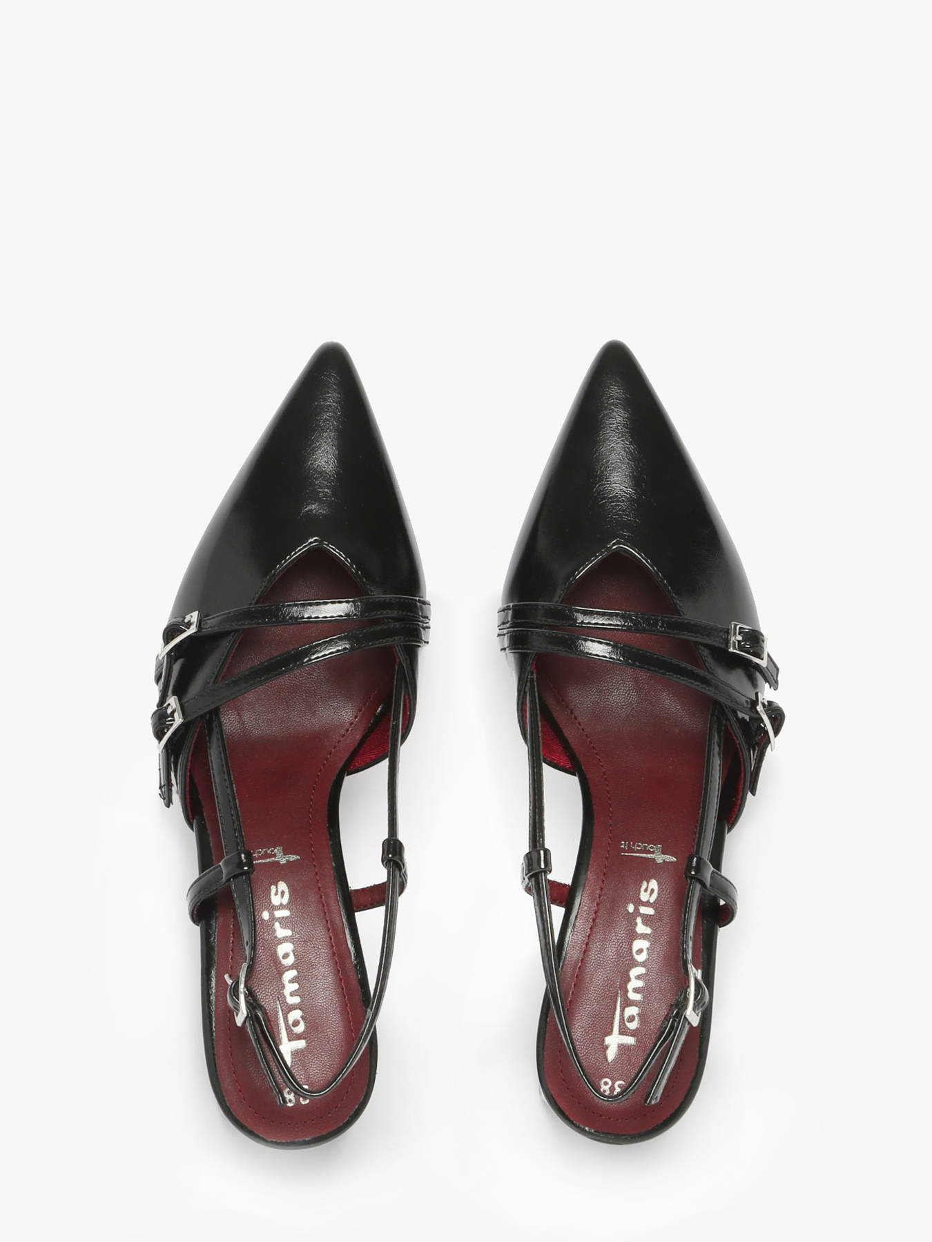 Faites briller votre personnalité lors des grands moments avec ces slingbacks Tamaris élégants, disponibles en noir et merlot verni. Leur talon de 6,5 cm, associé aux technologies Antislide et Antishokk, assure une démarche sûre et confortable même lors de longues soirées. La silhouette pointue et la fine bride à boucle offrent un style glamour au chic intemporel, parfait pour les mariages, cocktails ou événements sophistiqués. Exprimez votre individualité et affirmez votre allure à chaque pas, en étant pleinement vous-mêmes. Ces chaussures allient élégance et confort, permettant de rayonner en toute confiance et de profiter de chaque instant avec style et assurance.