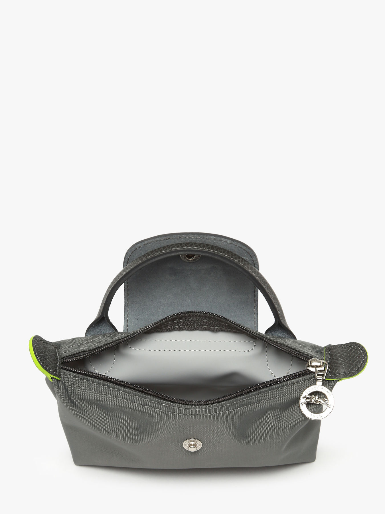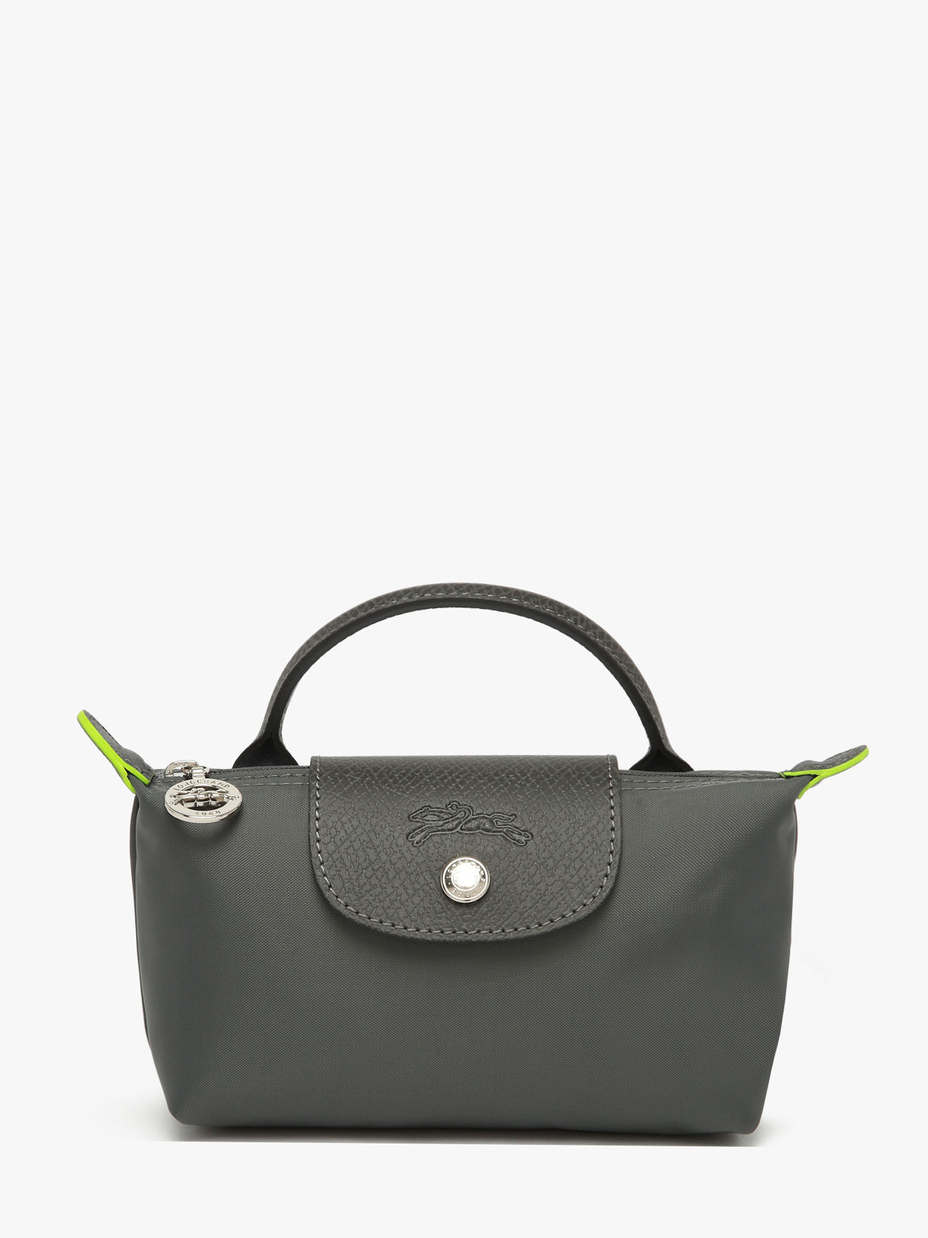Dit tasje met handvat kan men perfect gebruiken als make-uptasje, maar kan men even goed als extra tasje in de handtas gebruiken om persoonlijke spullen in te organiseren. Men kan het sluiten met rits en bevat daarnaast ook een overslag klep in het typische Russisch leder. De felgroene accenten op de oren van deze etui verwijzen deels naar de heldergroene kleur dat het merk weergspiegelt. Deze staat symbool voor zijn frisheid en dynamiek. Het kleur staat daarnaast ook symbool voor hun duurzaamheid. Zo is de volledige lijn geproduceerd uit gerecycled nylon.