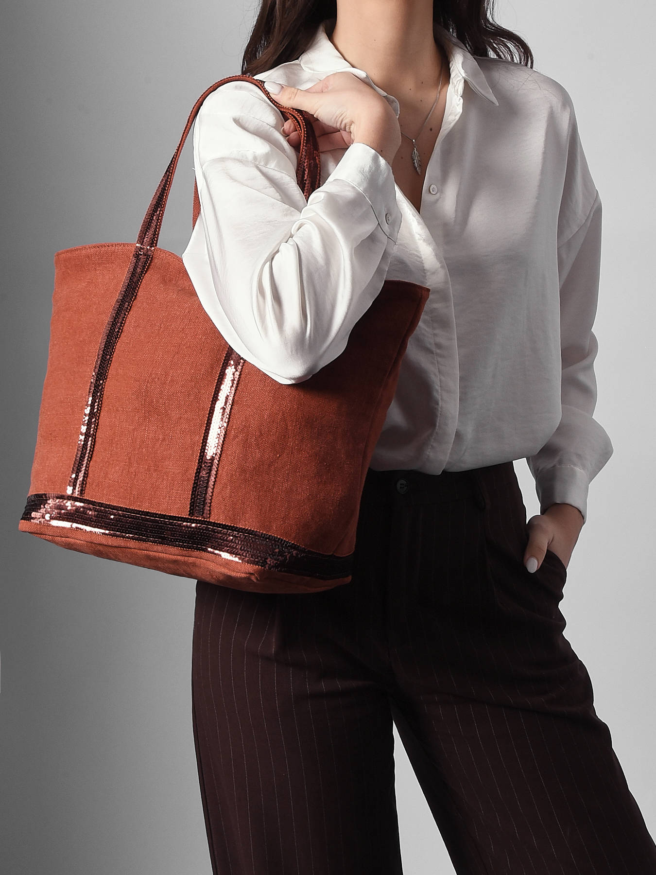 Handtas l le cabas linnen pailletten