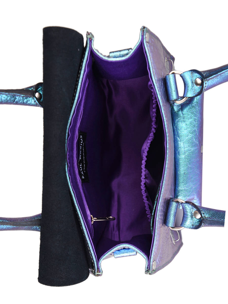 De karaktervolle Rive Gauche handtas uit de Vintage collectie van Paul Marius krijgt dit seizoen een nieuw kleur: metallic blauw! Deze bestseller van Paul Marius is volledig vervaardigd uit kwaliteitsvol en onbewerkt rundsleer. Het overslagflapje is makkelijk te openen en sluiten met behulp van de twee klikslotjes. Binnenin is een compact interieur met drie extra steekvakjes voorzien, waar u uw spulletjes overzichtelijk in kunt opbergen. Ook in het handige voorvakje kunt u kleine spulletjes stoppen. Bovendien is dit exemplaar voorzien van een afneembare schouderriem, om gekruist of lang over de schouder te dragen.