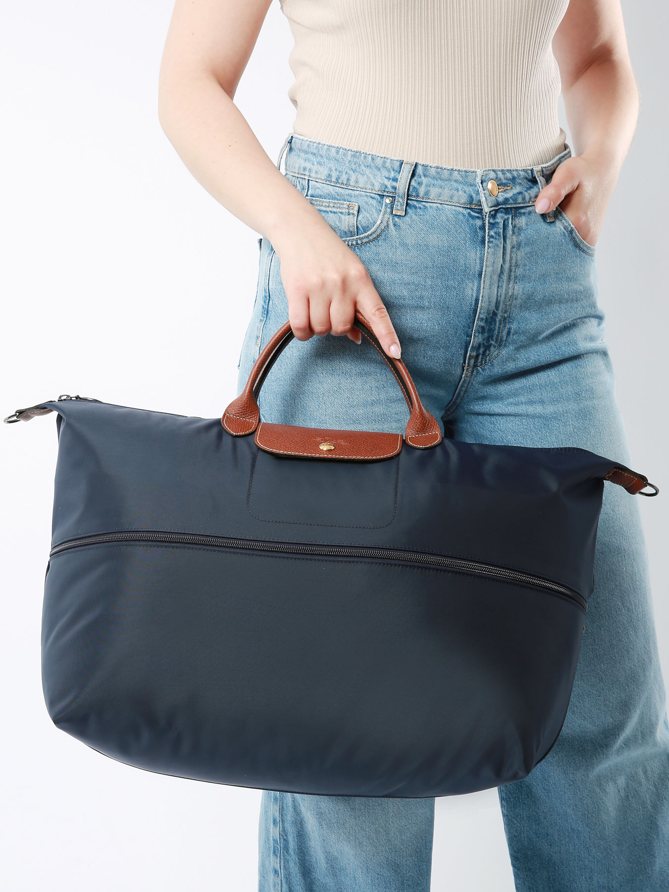 Deze grote nylon 'Le Pliage'-tas met lederen accenten én schouderriem kunt u makkelijk openritsen. Zo tovert u de compacte handtas om tot een ruime, diepere reistas. Een ingenieus ontwerp! De opvouwbare Le Pliage tassen zijn geďnspireerd op de origamikunst, en groeiden wereldwijd uit tot een cultobject. De Le Pliage lijn heeft tassen in verschillende vormen en groottes, en is ieder seizoen in een twaalftal kleuren verkrijgbaar.