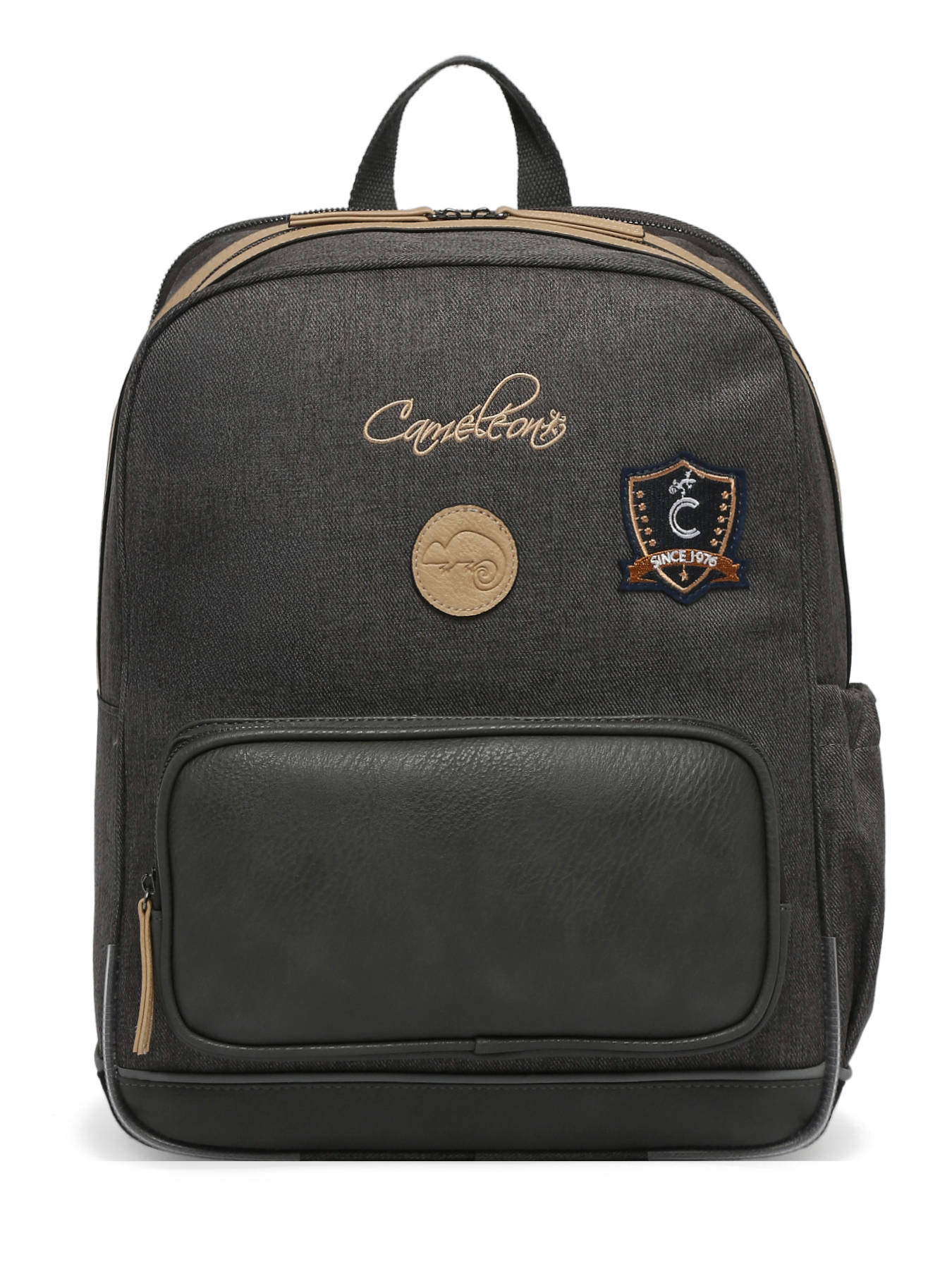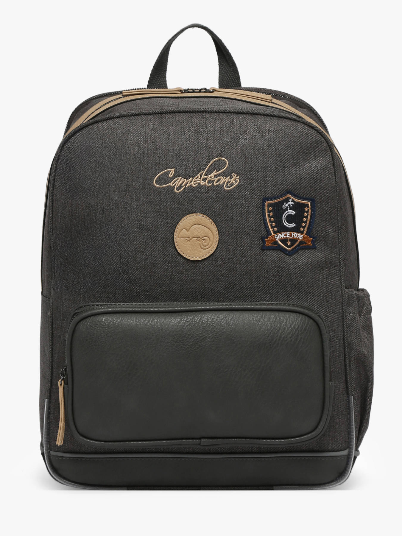 40 cm - 17 liter - 0.78 kg ~ Deze 40 cm rugzak met twee vakken uit de Vintage Urban-lijn van Caméléon is perfect voor groep 4, 5 en 6. Voor een optimale organisatie heeft hij twee ruime vakken waarin een ordner tot 26x32x4 cm past. Praktisch gezien heeft hij aan de voorkant een vak met ritssluiting en een zijvak voor een drinkfles. De bodem en zijkanten zijn verstevigd, waardoor hij geschikt is voor dagelijks gebruik. Voor het comfort van uw kind zijn de rug en schouderbanden gewatteerd. Aan de voorkant zit een reflecterende strip voor optimale veiligheid. Als extra heeft deze rugzak een naamlabel.