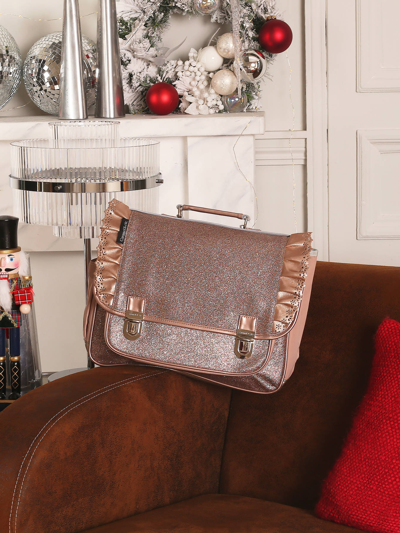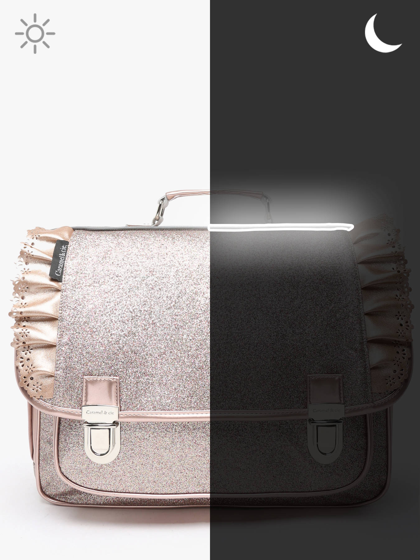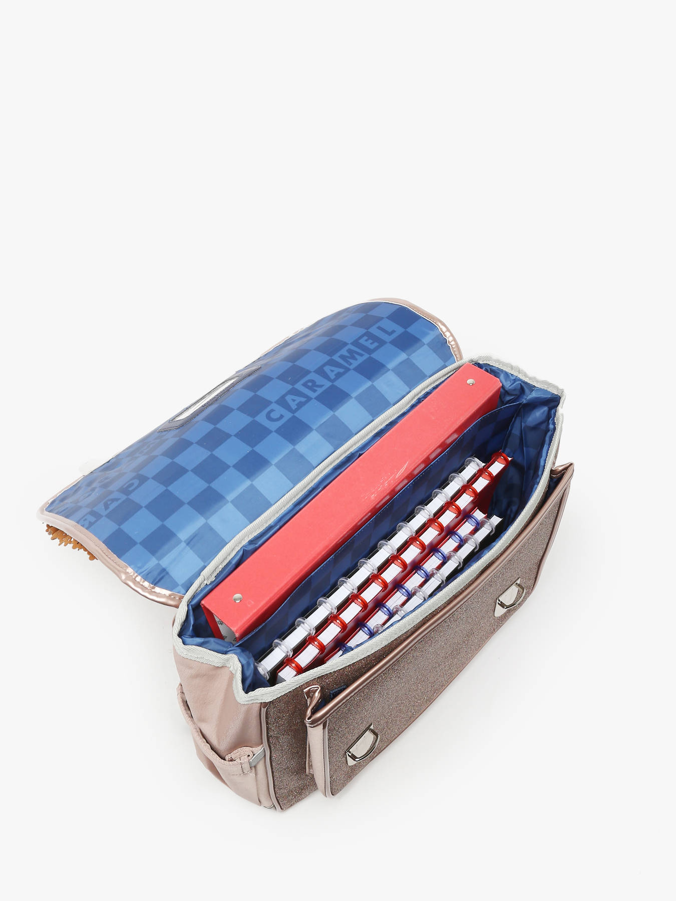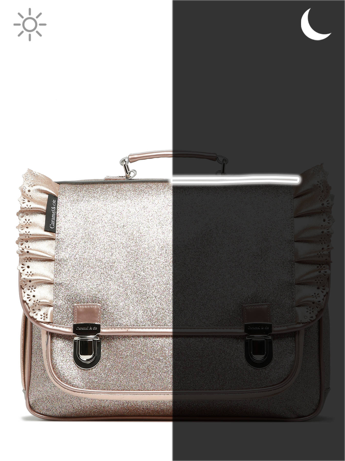 38 cm - 12 liter - 0.85 kg ~ Boekentas 2 compartimenten van de lijn Boheme van Caramel et cie, om ofwel in de hand ofwel op de rug te dragen. Een heel praktische en comfortabele Boekentas 2 compartimenten.