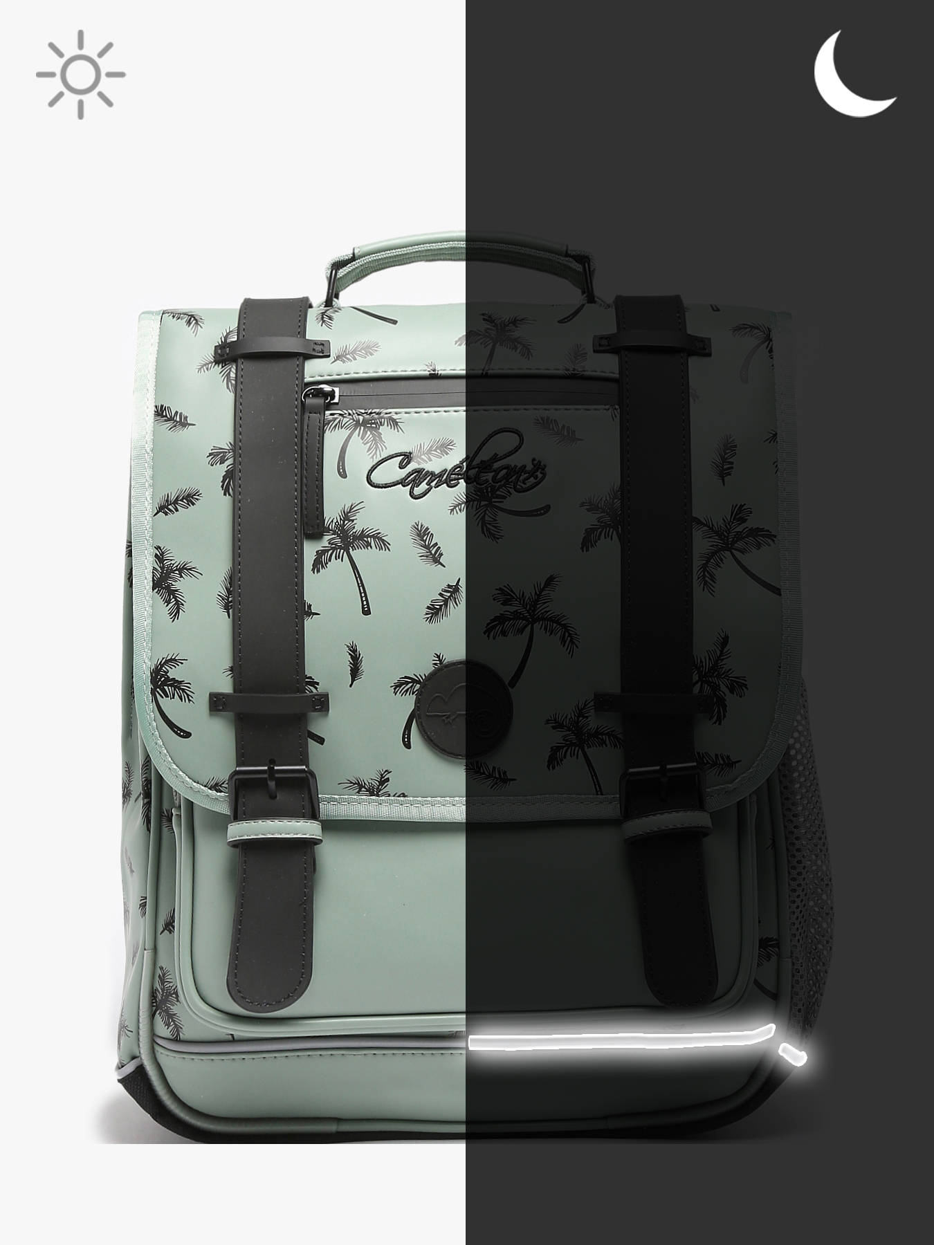 Deze rugzak uit de Vintage North collectie van Caméléon is ideaal voor de 1ste graad van de basisschool. Deze rugzak is gemaakt van waterafstotend gerecycleerd polyester, en beschikt over drie ruime opbergvakken. Deze kunnen schriften (24x32 cm) en schoolboeken van A4 formaat of groter bevatten. Daarnaast beschikt deze Caméléon-rugzak ook over een ruim voorvak met ritssluiting, en een handig mesh zijvakje om een waterfles in op te bergen. Onder de overslagflap bevindt zich een uniek opbergvakje voor een liniaal. Dankzij reflecterende strips kan uw kind zich veilig in het verkeer begeven. Tenslotte zijn de verstelbare schouderbanden en rugzijde gewatteerd, voor een optimaal draagcomfort.