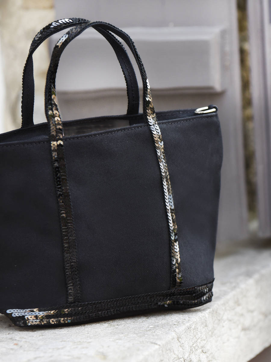 Ce sac Vanessa Bruno reprend le modèle signature de la marque française. Il est présentée ici dans une version mini. Il est réalisé dans une belle toile légère rehaussée de sequins ton sur ton. Entièrement zippé, il permet d' y glisser votre porte monnaie, téléphone et clés. Portez le en travers du corps par sa fine bandoulière amovible.