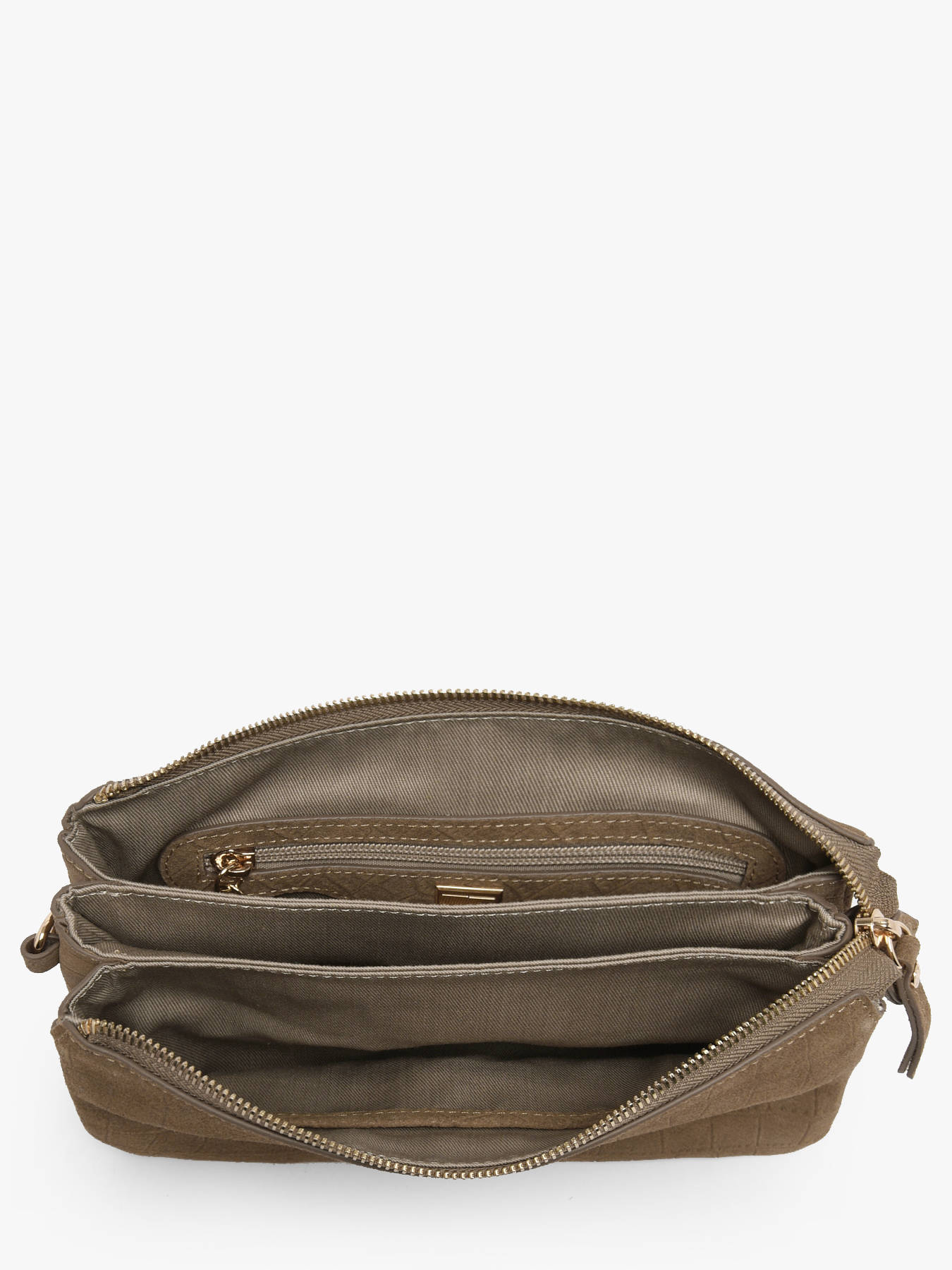 Le sac bandoulière EQUESTRE CROCO d’Etrier se distingue par son cuir de vachette velours imprimé crocodile, un mariage audacieux de textures qui apporte sophistication et charme sauvage à chaque modèle. Ce sac allie élégance et fonctionnalité avec sa fermeture zippée, son rabat à fermoir et sa bandoulière réglable et amovible, vous offrant plusieurs façons de le porter en toute simplicité. À l’intérieur, trois compartiments bien organisés vous permettent de ranger vos essentiels avec soin, complétés par une poche simple et une poche zippée pour une meilleure organisation. Les finitions dorées apportent une touche raffinée qui sublime ce sac, parfait pour celles qui cherchent à allier style intemporel et caractère affirmé. Le sac Equestre Croco est un véritable bijou pour votre garde-robe, parfait pour accompagner vos looks au quotidien avec une allure chic et sauvage.