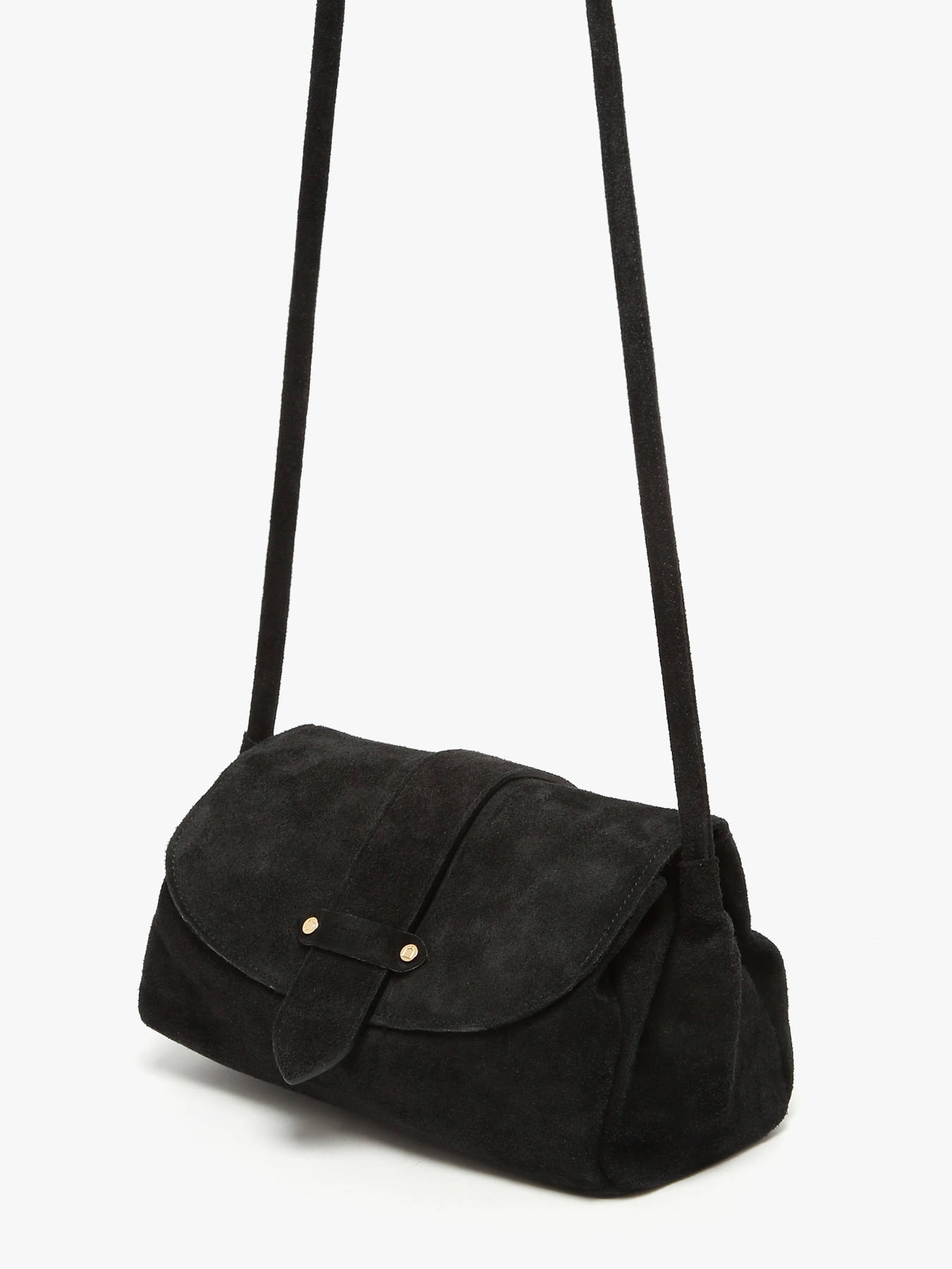 Le sac porté bandoulière AGNES signé ETRIER est conçu en France dans cuir velours italien, offrant une texture douce et raffinée. Ce modèle est présenté ici en taille M et se ferme par un rabat doté d'un bouton-pression aimanté. Il existe également en taille S pour celles et ceux qui préfèrent un format plus compact. Le sac est agrémenté d'une languette réversible, composée d'une face dorée et d'une face en cuir assortie au reste du sac. Elle se fixe aisément grâce à deux boutons de col et se glisse dans une poche arrière prévue à cet effet.