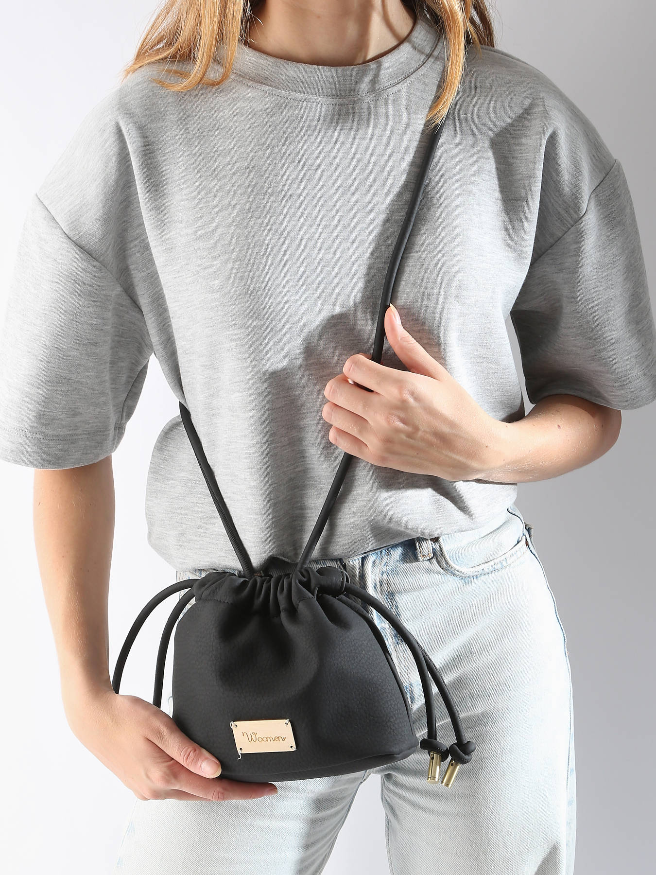 Ce sac bandoulière WOOMEN de la ligne MUSCARI est fabriqué en polyuréthane recyclé avec un effet grainé et un toucher peau de pêche. Cette petite bourse au design gonflant se distingue par un détail lien de coulisse permettant de régler le sac à votre convenance. Il se ferme avec un aimant et, à l'intérieur, offre une poche éclair et un compartiment unique pour une organisation pratique.