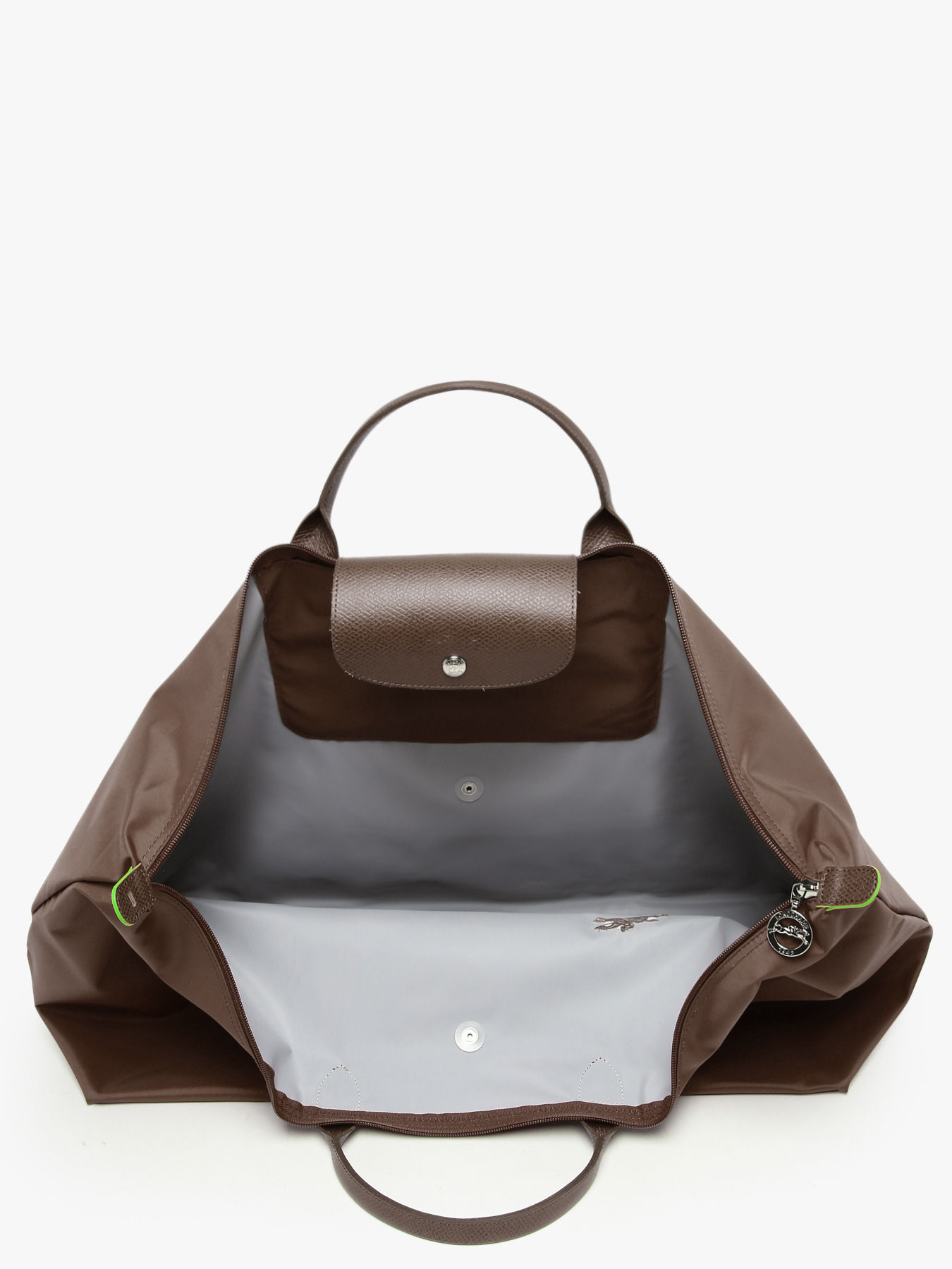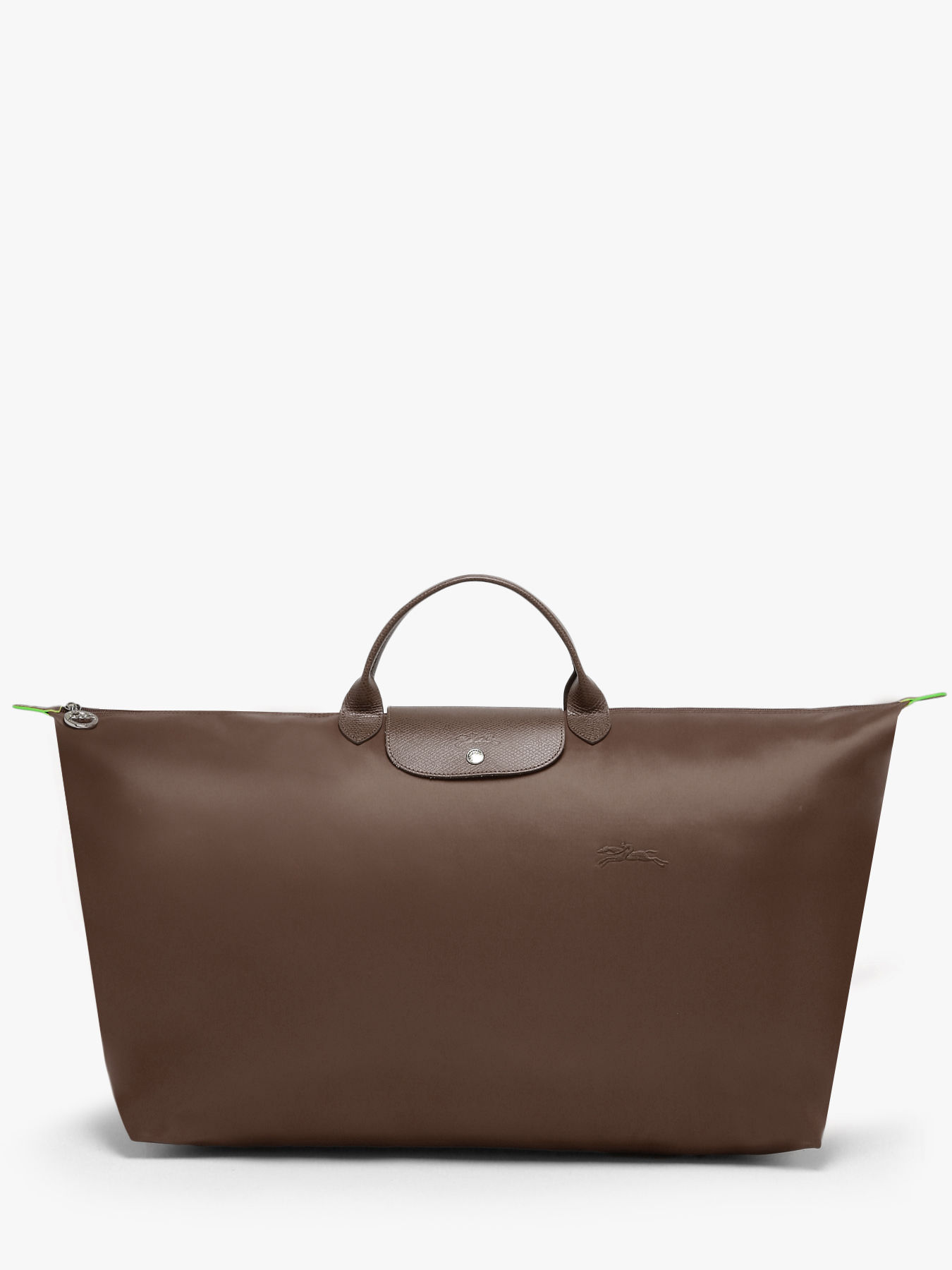 La fermeture de ce sac de voyage Le Pliage Green de chez Longchamp se fait à l'aide d'un zip. Vous pourrez le porter à la main grâce aux deux petites anses.