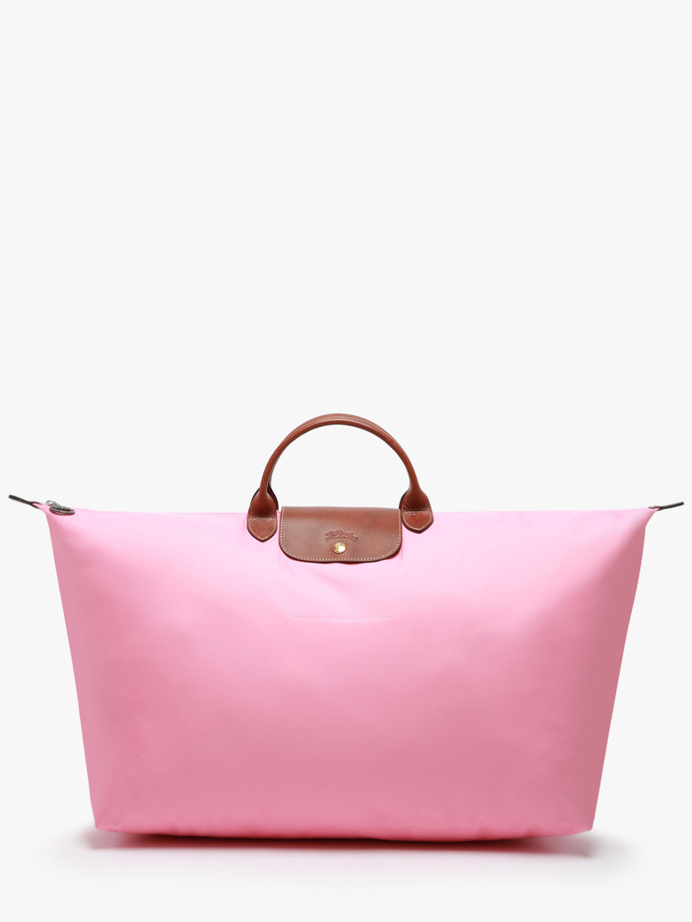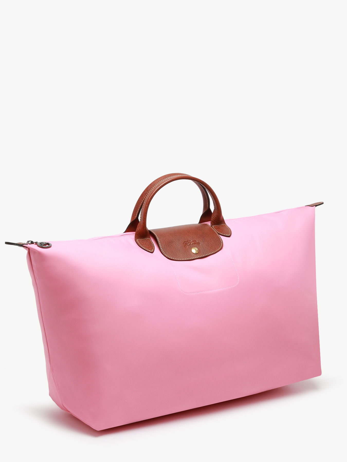 Fermez ce sac de voyage Le Pliage Longchamp à l'aide d'un zip ainsi que d'un rabat à pression et portez-le à la main.
