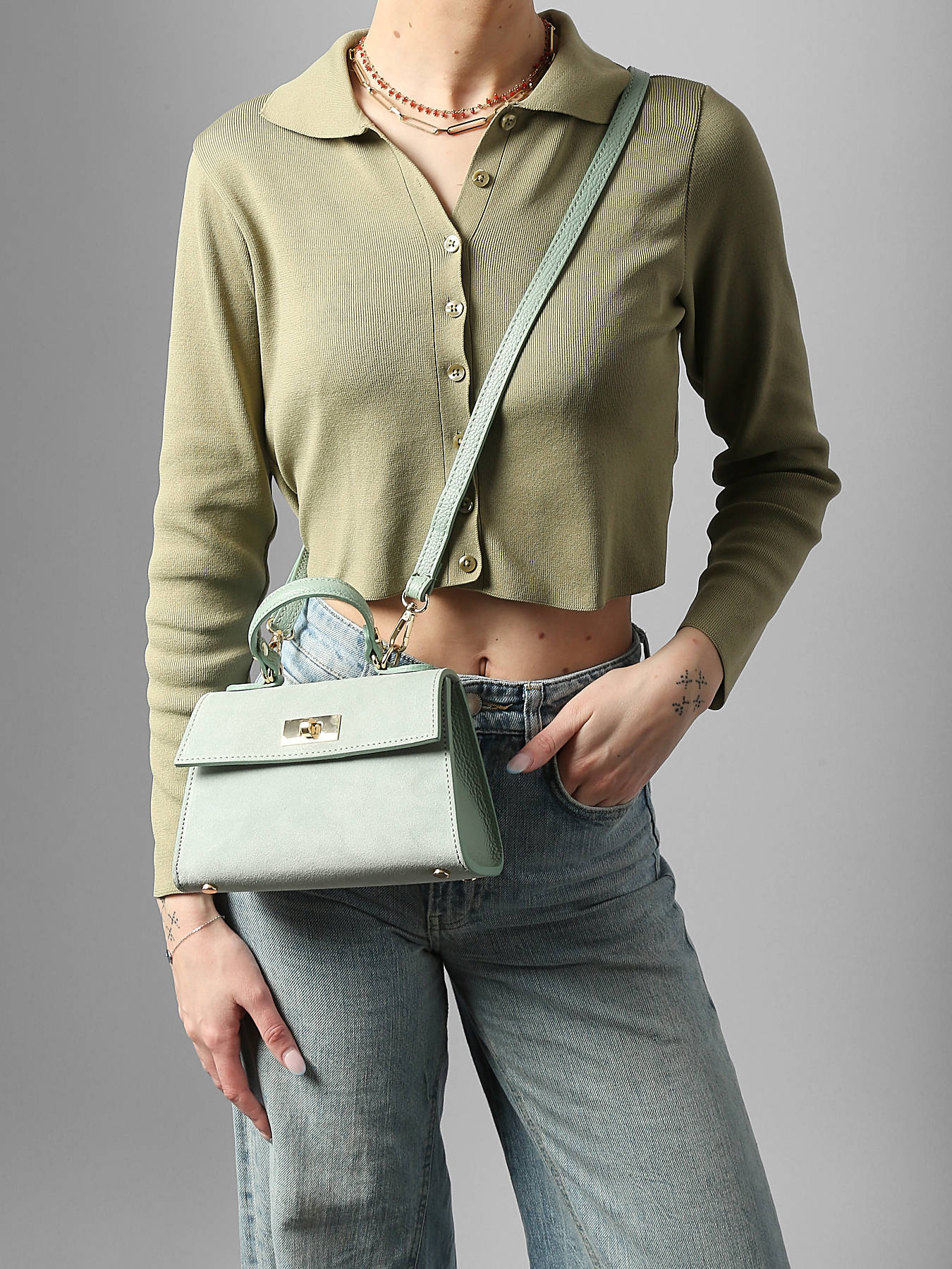 Le sac porté épaule VELVET CAVIAR MILANO, conçu en cuir de vachette de haute qualité, allie élégance, modernité et praticité pour vos sorties quotidiennes ou occasions spéciales. Son extérieur raffiné est doté d’un fermoir sécurisé, garantissant la protection de vos effets personnels tout en ajoutant une touche chic et sophistiquée. La hauteur de la anse de 9 cm, associée à la bandoulière réglable et amovible, permet un porté polyvalent à la main ou en bandoulière, selon vos envies et besoins. À l’intérieur, un compartiment principal est complété par une poche zippée, offrant un espace organisé pour vos essentiels tels que téléphone, portefeuille et petits accessoires indispensables. Compact mais fonctionnel, ce modèle séduit par ses lignes élégantes et la qualité de son cuir, qui lui confèrent durabilité et raffinement. Le sac VELVET CAVIAR MILANO est un accessoire chic et pratique, parfait pour compléter vos looks avec style et sophistication.