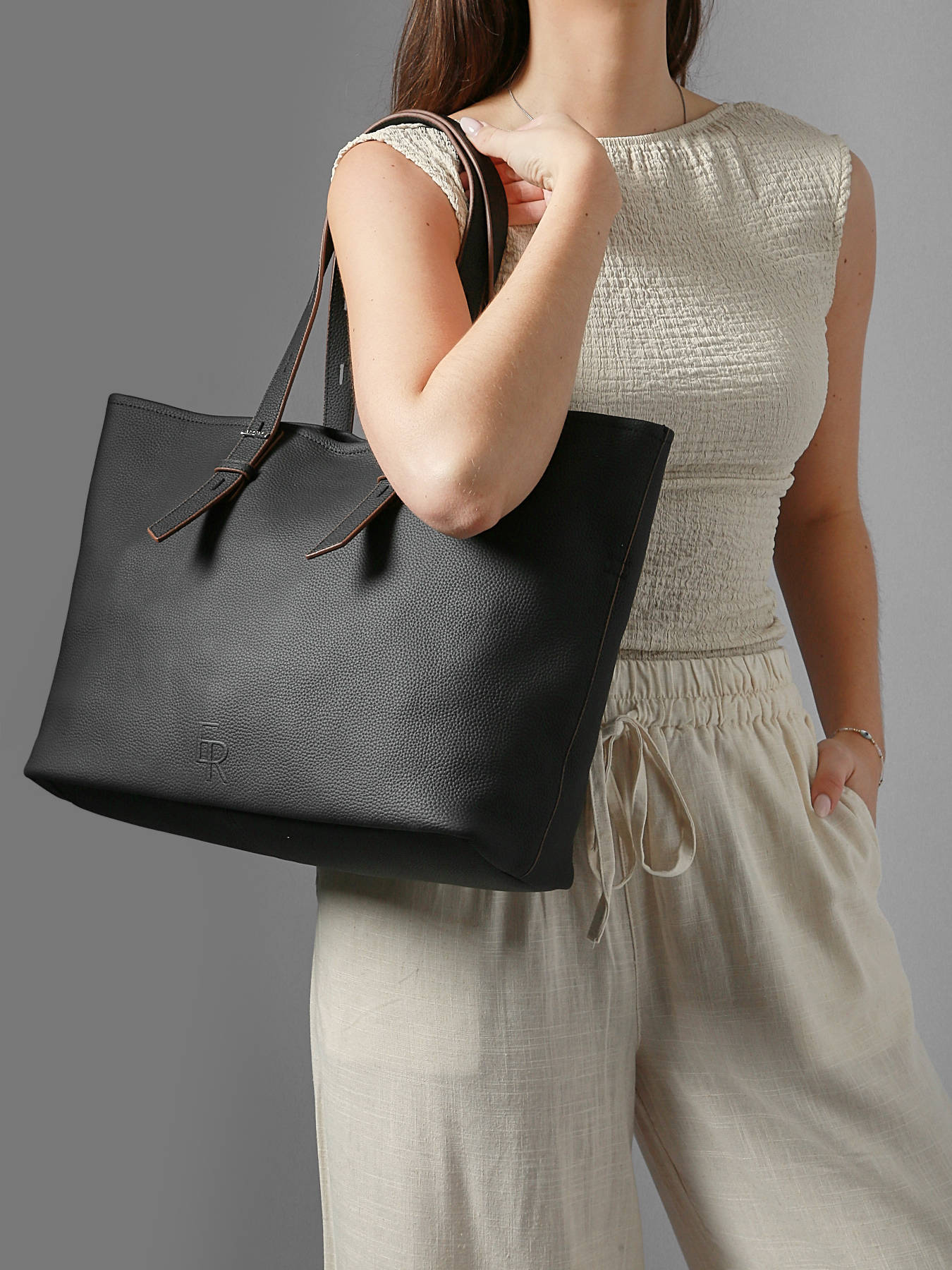 De CAVALIER shopper van ETRIER is gemaakt van volnerf rundleer met een korrelstructuur, wat zowel stevigheid als elegantie biedt. De handvatten, verstelbaar dankzij een slim detail, zorgen voor een gepersonaliseerde grip. De tas sluit veilig met een magnetische drukknop, en de binnenkant bestaat uit een grote, uitneembare katoenen zak, ideaal om je spullen te beschermen en te organiseren. Het moderne logo, geperst in het leer, bevat de letters van ETRIER voor een subtiele toets van verfijning. Met zijn ruime binnenkant biedt de tas ook ruimte voor A4-documenten, wat zowel praktisch als stijlvol is. Een ruime en verfijnde tas, perfect om je dagelijkse leven met elegantie te begeleiden.