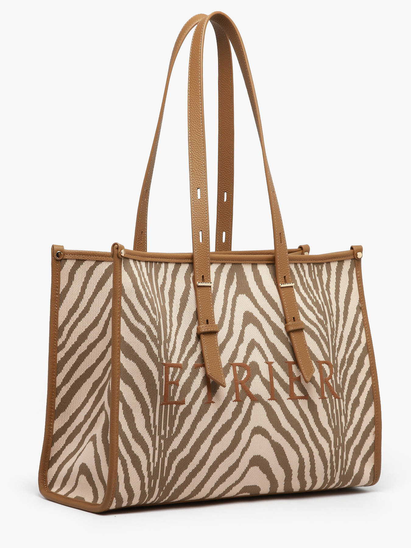 De schoudertas SAFARI van ETRIER herinterpreteert de iconische shopper in een gedurfde en uitgesproken modieuze versie. Gemaakt van textiel met leren afwerkingen, valt hij op door zijn grafische dierenprints die een sterke en hedendaagse stijl uitstralen. Ruim en functioneel, is het L-formaat ideaal om je zomerse dagen te begeleiden, zowel in de stad als tijdens uitstapjes. De hengsels van 28 cm zorgen voor comfortabel schoudergebruik, terwijl de ritssluiting je persoonlijke spullen veilig afsluit. Aan de binnenkant biedt een ritssluitingvak snelle toegang tot je essentials. Een praktische en stijlvolle shopper, ontworpen voor wie elegantie combineert met een wilde geest.