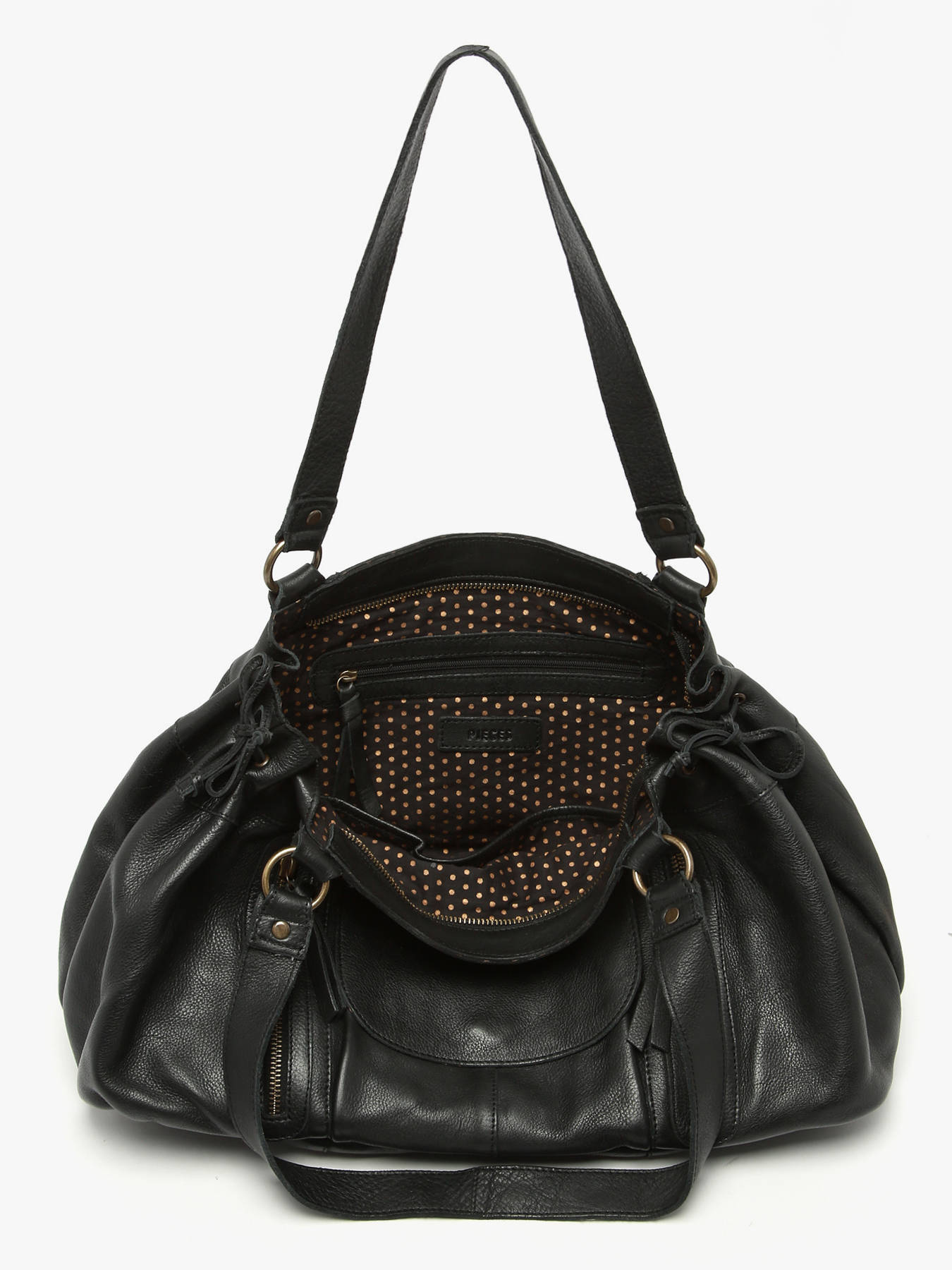 Elegante schoudertas uit de 'Pihanna' collectie van het merk Pieces. Dit shoppingmodel uit soepel kalfsleder kan makkelijk documenten van A4 formaat bevatten. De tas opent en sluit door middel van een rits en onthult een ruim compartiment met verschillende opbergvlakken aan de binnen- en buitenkant. Ideaal om al uw dagelijkse spulletjes netjes te ordenen. Dit exemplaar laat zich zowel in de hand als om de schouder dragen, dankzij de twee middellange hengsels. Sober maar charmant, het ultieme accessoire voor de modebewuste vrouw.