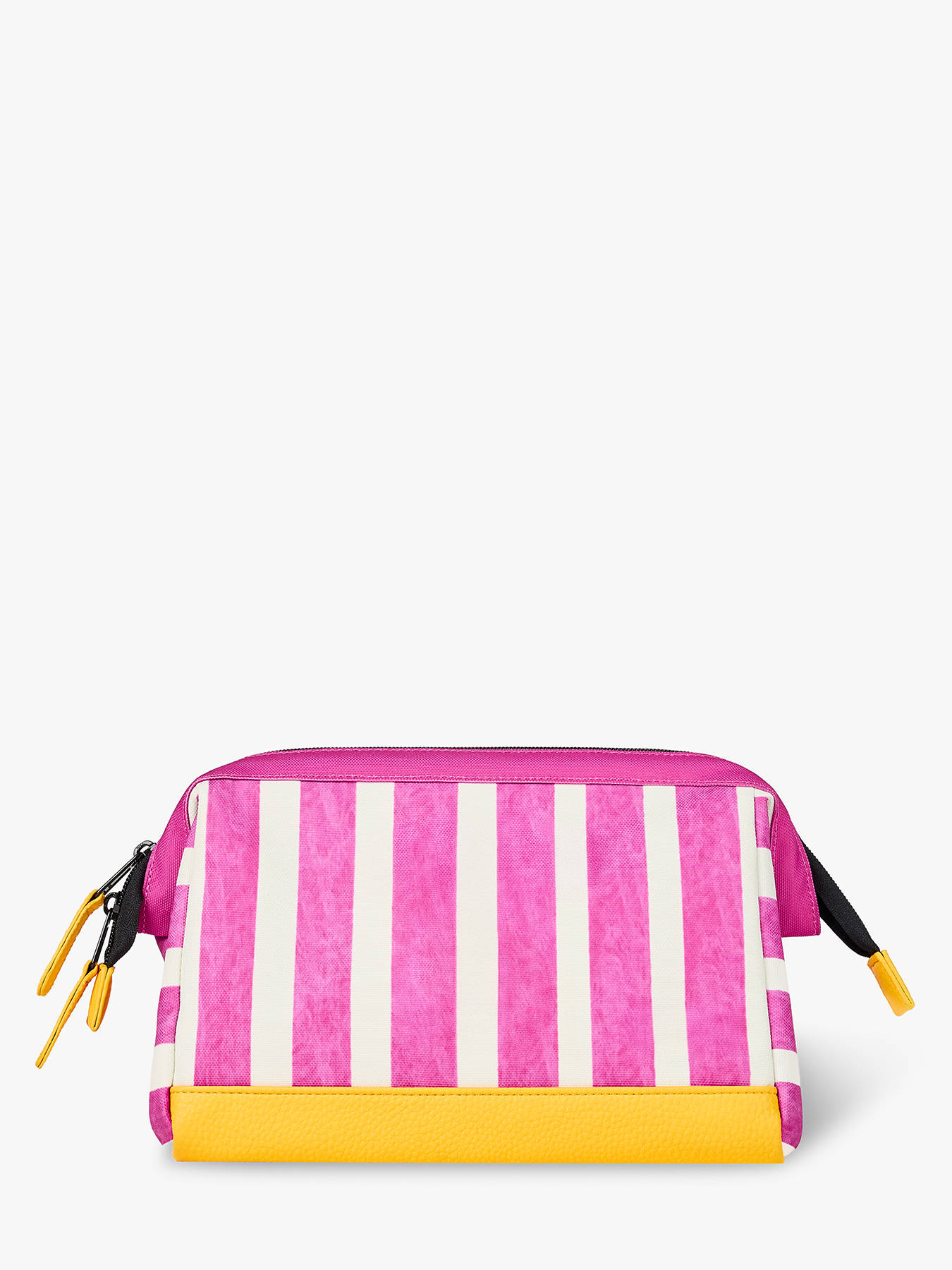 Een heel stevige en grote toilettas, met binnenin nog enkele verdeelzakjes. Alleen is de kleur in het echt een beetje anders dan op de foto: minder geel maar meer roos.